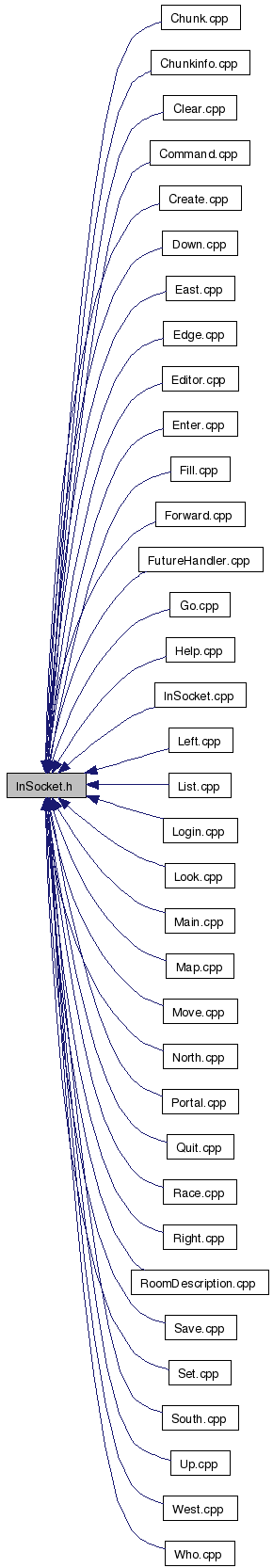 InSocket.h File Reference#include <TcpSocket.h>#include <ISocketHandler.h>#include <IEventOwner.h>Include dependency graph for InSocket.h: ![]() This graph shows which files directly or indirectly include this file: ![]() Go to the source code of this file.